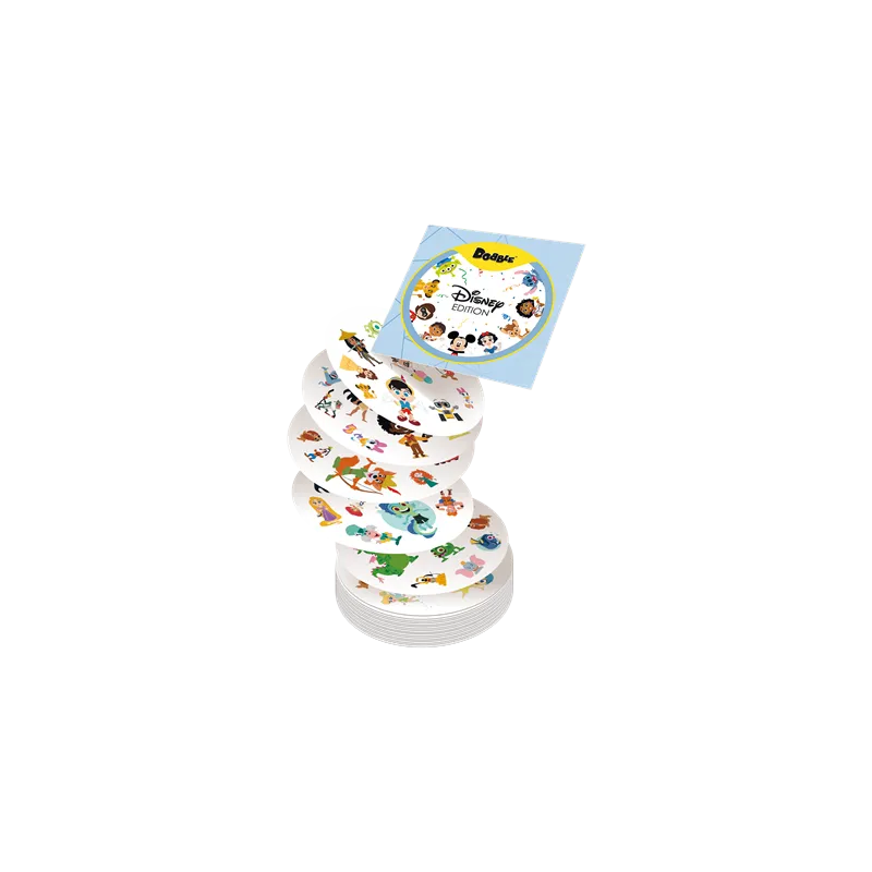 Encuentra las parejas de tus personajes favoritos de Disney y Pixar en esta edición especial del clásico juego Dobble, ¡el juego de observación y rapidez de reflejos para todos! ¡Sé el primero en decir qué símbolo coincide entre dos cartas para ganar!