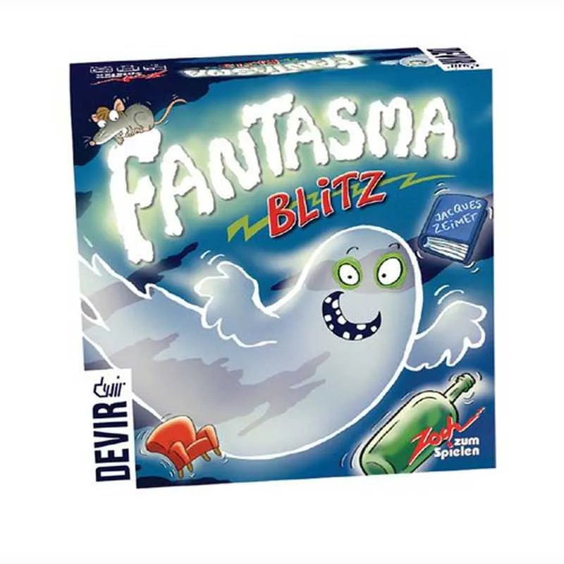 El juego de reconocimiento de colores y formas ultrarrápido que seguramente pondrá a prueba los reflejos de niños, familias y jugadores por igual. En Ghost Blitz, cinco artículos de madera se sientan en la mesa esperando ser atrapados: un fantasma blanco, una botella verde, un lindo ratón gris, un libro azul y una cómoda silla roja. Cada carta de la baraja muestra imágenes de dos objetos, con uno o ambos objetos coloreados de forma incorrecta. Con todos los jugadores jugando al mismo tiempo, alguien revela una carta, luego los jugadores agarran el objeto «correcto», pero ¿qué objeto es el correcto?