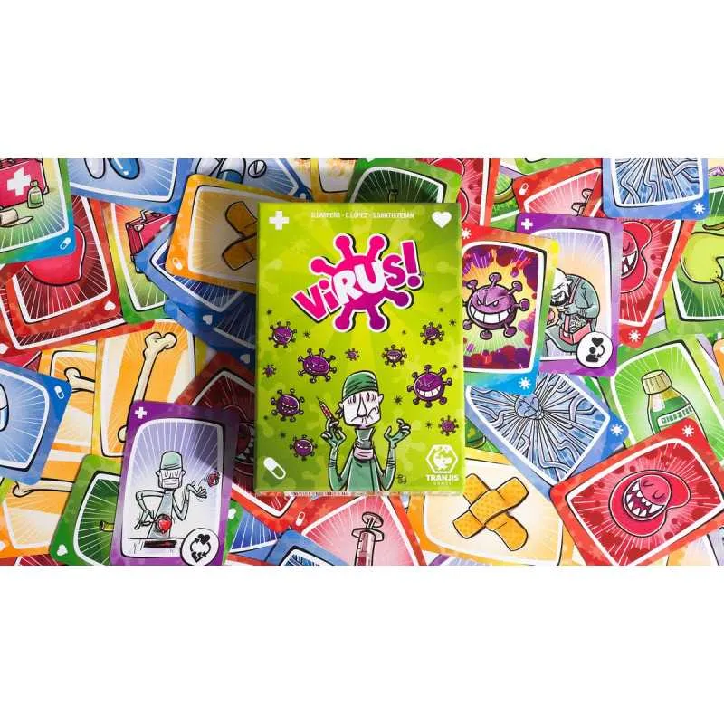 Virus es un juego de cartas rápido y divertido para todas las edades, pensado y diseñado para que un adulto pueda competir contra un niño al mismo nivel. Actualmente, hay mas de 500 mil copias vendidas en mas de 30 países.